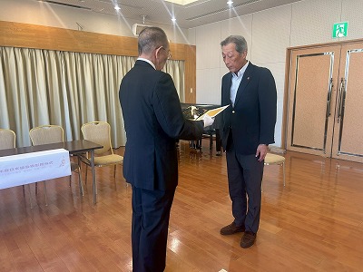 このほど、桜田学監督ら指導者と選手16人が市役所を訪問。主将の山口新君(十和田東中3年)は